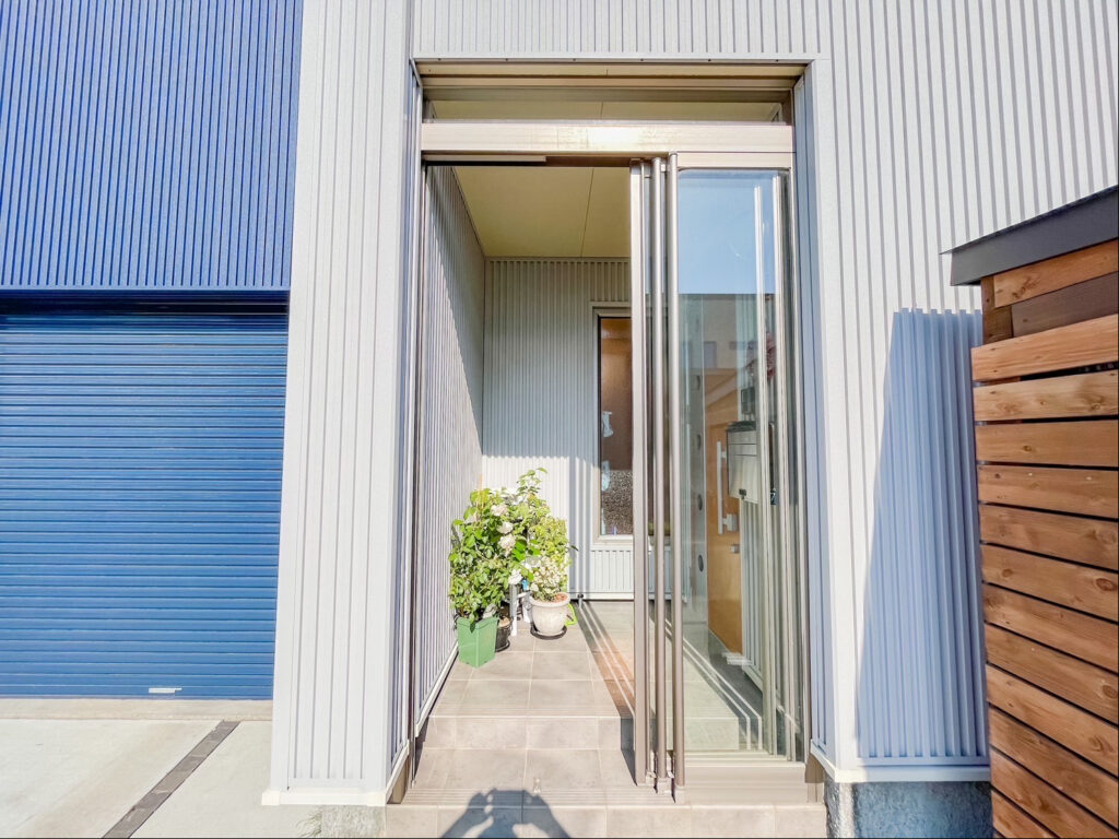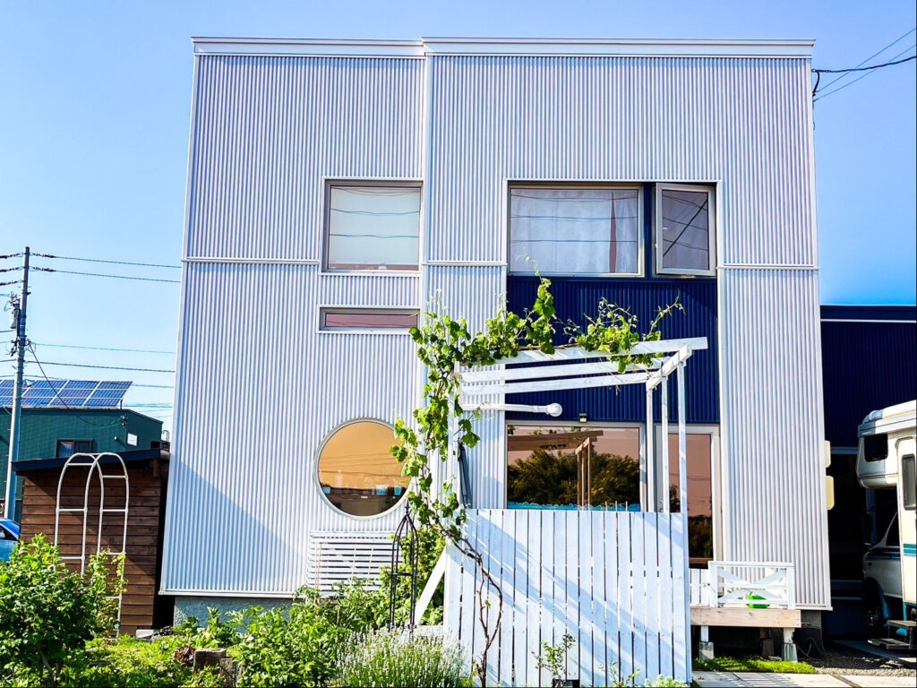直線的な家のカタチを活かし、シャープなラインが魅力のスマートな住まいになるよう、スパンドレル調のサイディングをご提案いたしました。