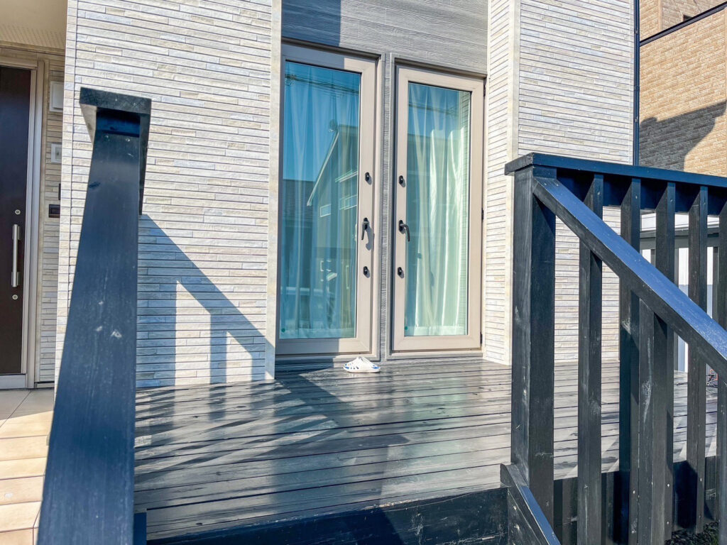 モダンでバランスのとれた住まいになるよう、ナチュラルな風合いのサイディングとグレーのウッドを組み合わせたサイディング工事をご提案いたしました。