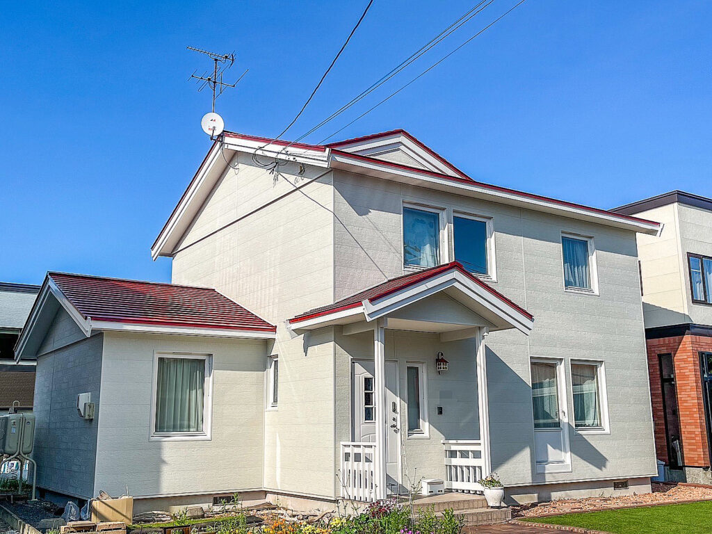 白をベースにワンポイントで屋根に赤を取り入れることで、清潔感のある可憐な住まいになりました。